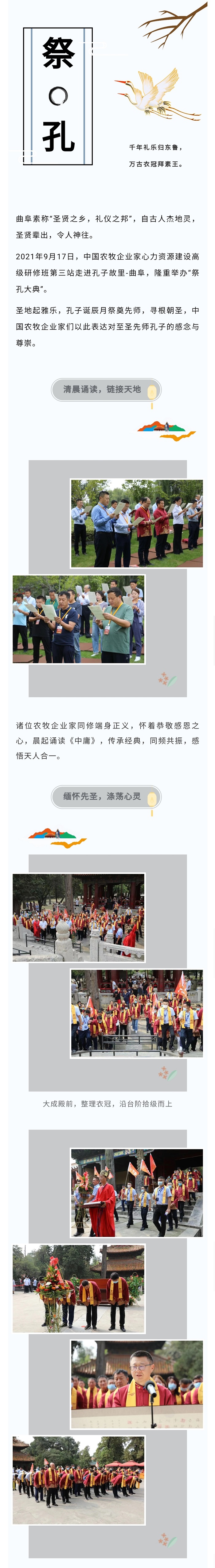 2021年9月17日,中國農牧企業家心力資源建設高級研修班第三站走進孔子故里-曲阜,隆重舉辦“祭孔大典”。